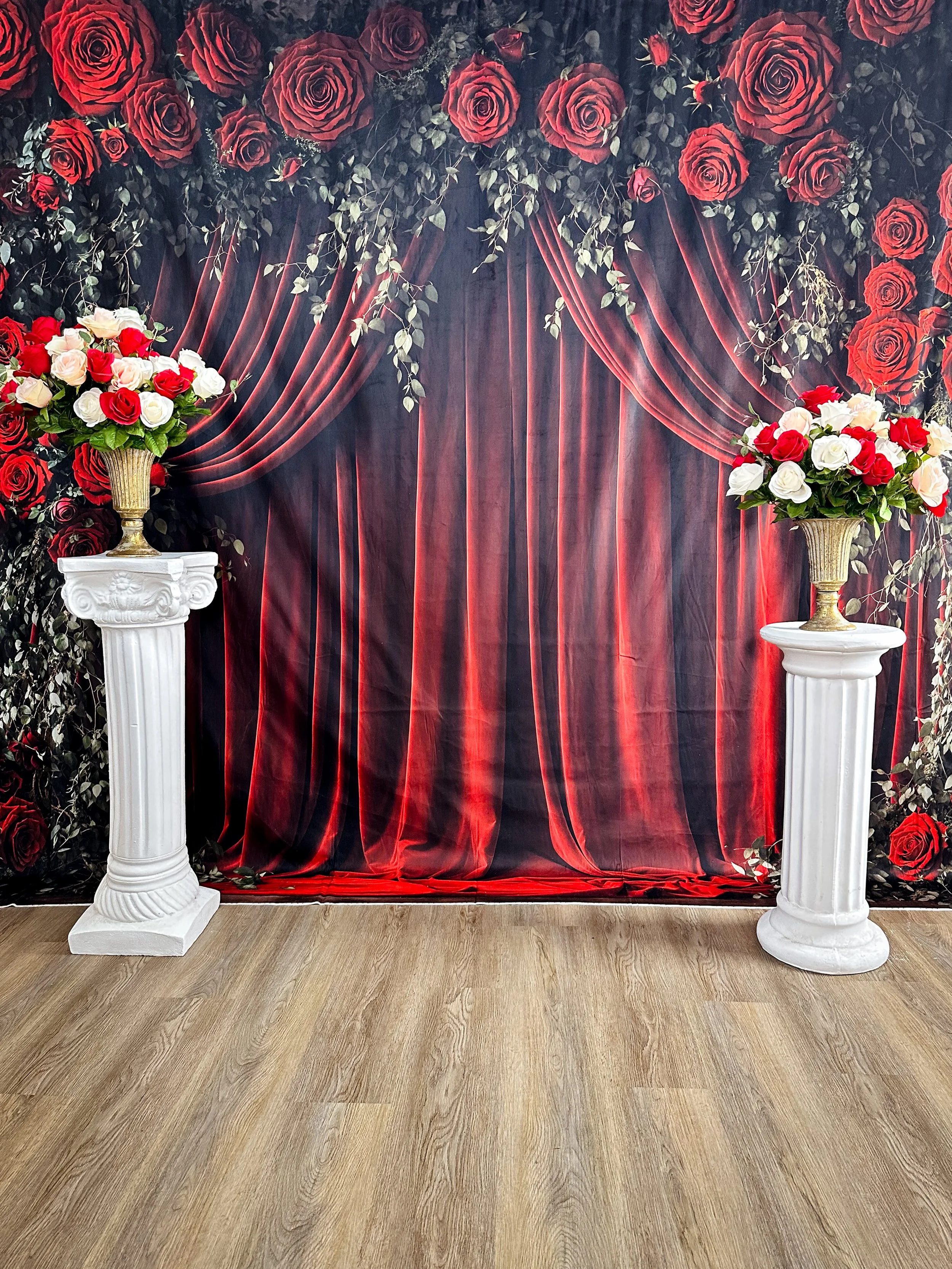 Our Valentine Studio is designed with rich crimson drapery, lush florals, and timeless romance—perfect for couples, engagement sessions, bridal portraits, self-love shoots, or editorial storytelling. Every detail is styled to feel intentional, dramatic, and unforgettable.